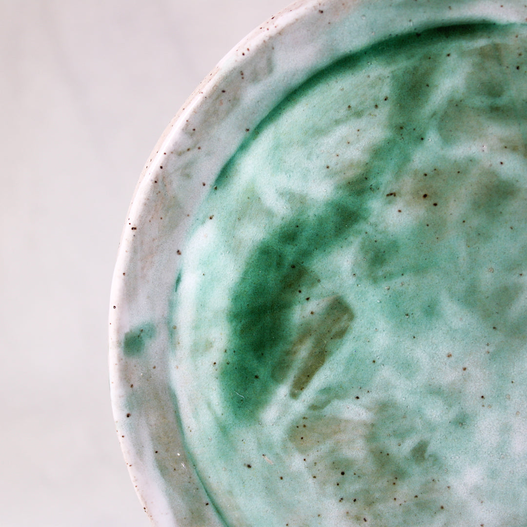 This elegant ceramic plate, by Louis Smart, features a stunning teal glaze that radiates sophistication and calm. The smooth, glossy finish beautifully captures the light, enhancing the rich depth of color and highlighting the plate's fine craftsmanship. Perfect for both everyday use and special occasions, this plate offers a harmonious blend of function and style. The artist’s attention to detail is evident in the perfectly balanced design and refined simplicity, making this piece not only a practical tableware item but also a striking decorative element that adds a pop of vibrant color to any setting.