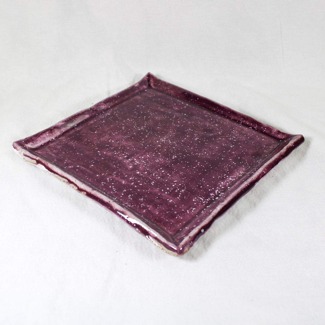 This elegant Purple Square Ceramic Plate, by Angela Knight, is a stunning blend of contemporary design and artistic flair. The plate features a rich, vibrant purple glaze that adds a touch of sophistication and creativity to any table setting. Its sleek, square shape creates a modern aesthetic, making it perfect for serving appetizers, desserts, or as a decorative piece in your home. The smooth surface and high-quality finish reflect the artist's meticulous craftsmanship and attention to detail, ensuring a durable and eye-catching addition to your dining experience. Whether used for special occasions or everyday meals, this ceramic plate is sure to impress and elevate your dining decor.