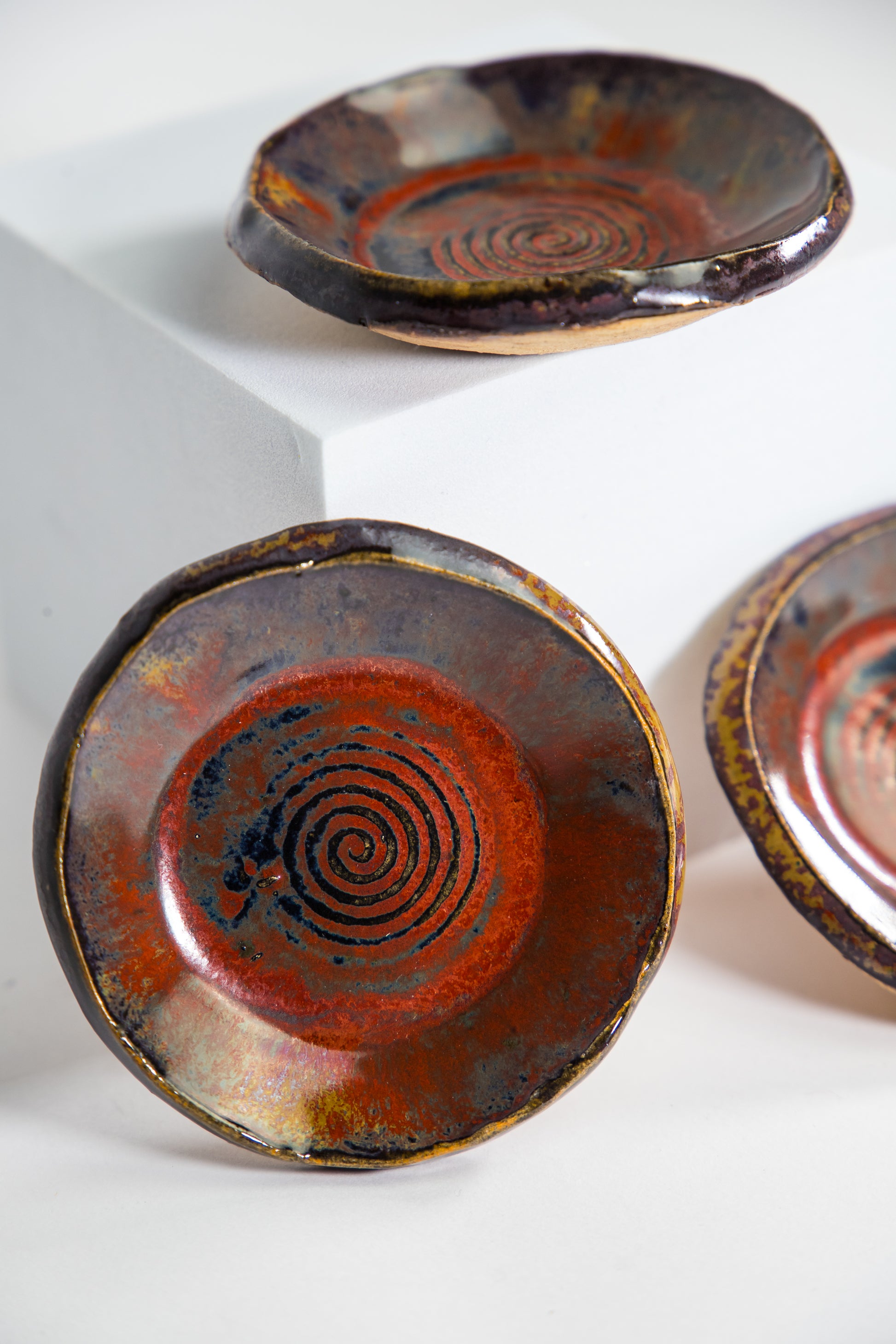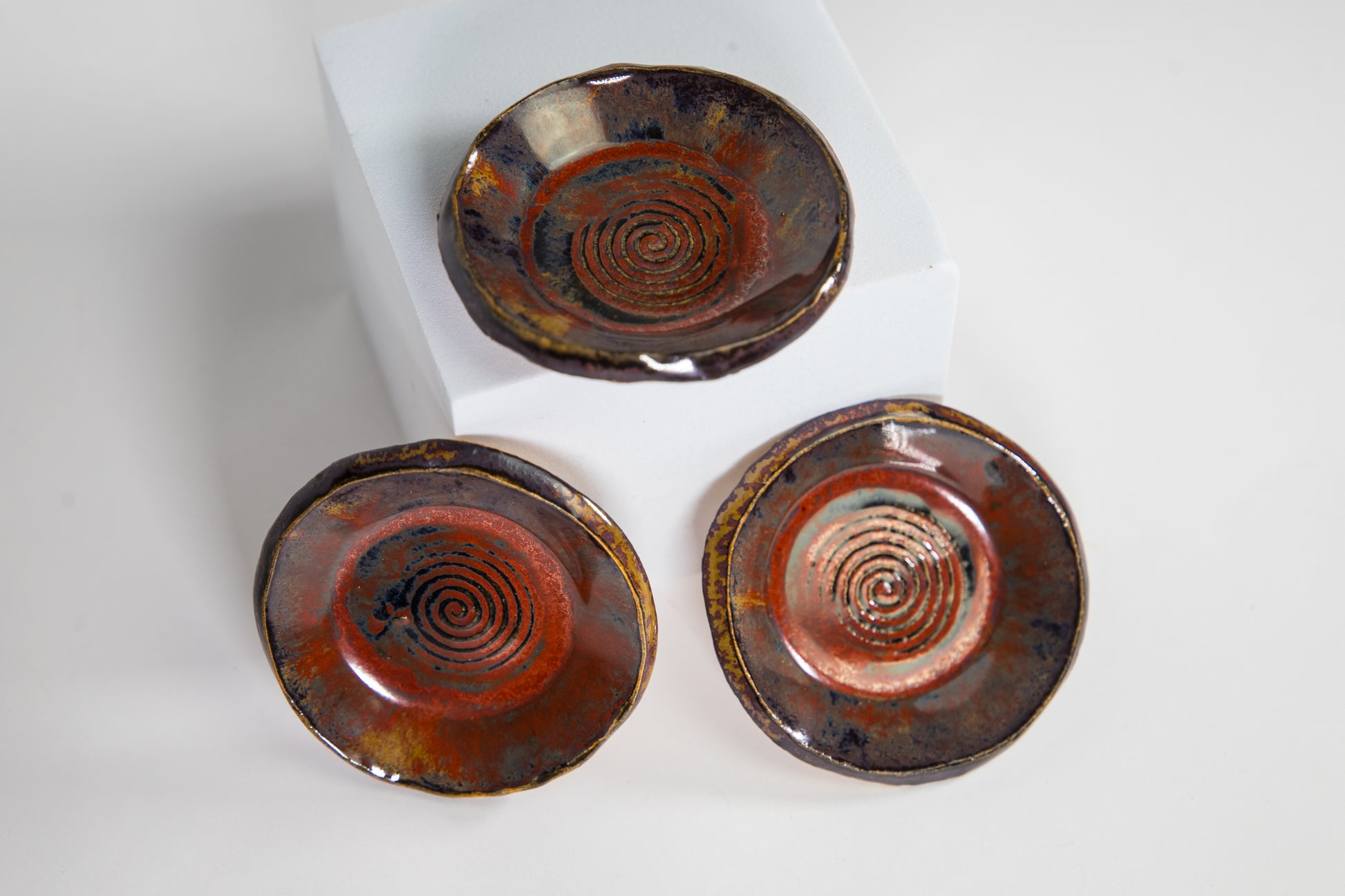 This handcrafted trinket dish set features three entirely unique pieces that can be used for storing small items, decorating a space, or more!