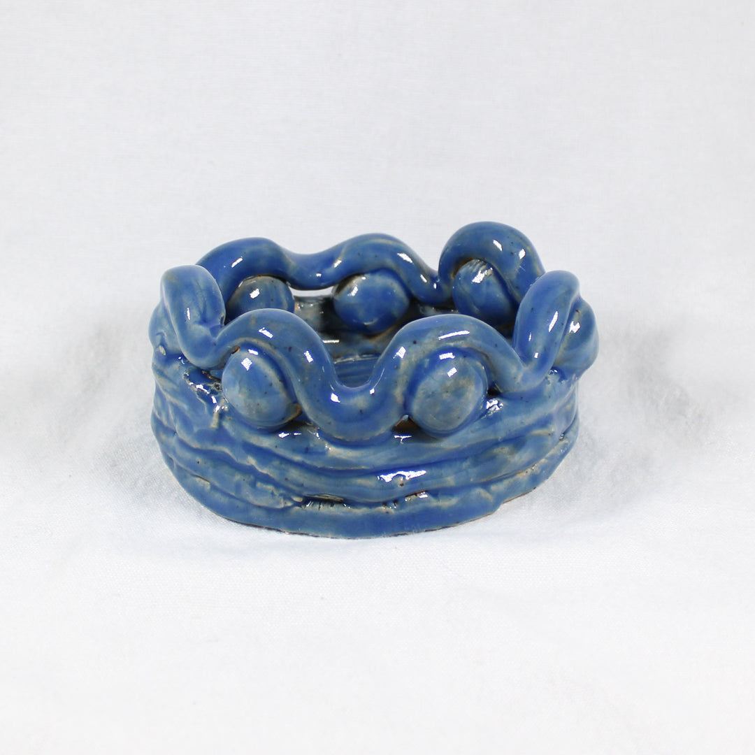 The Coil Dish by Dovid Last is a captivating ceramic piece that showcases a playful yet elegant design. Handcrafted with a distinctive coiled pattern around the edges, the dish features smooth, undulating curves that give it a dynamic and sculptural feel. The glossy blue glaze highlights the craftsmanship, adding a sleek and polished finish to its unique form. Ideal for holding small trinkets, serving snacks, or as a decorative statement, this dish blends both functionality and artistry, reflecting Last's creative approach to traditional ceramic techniques.