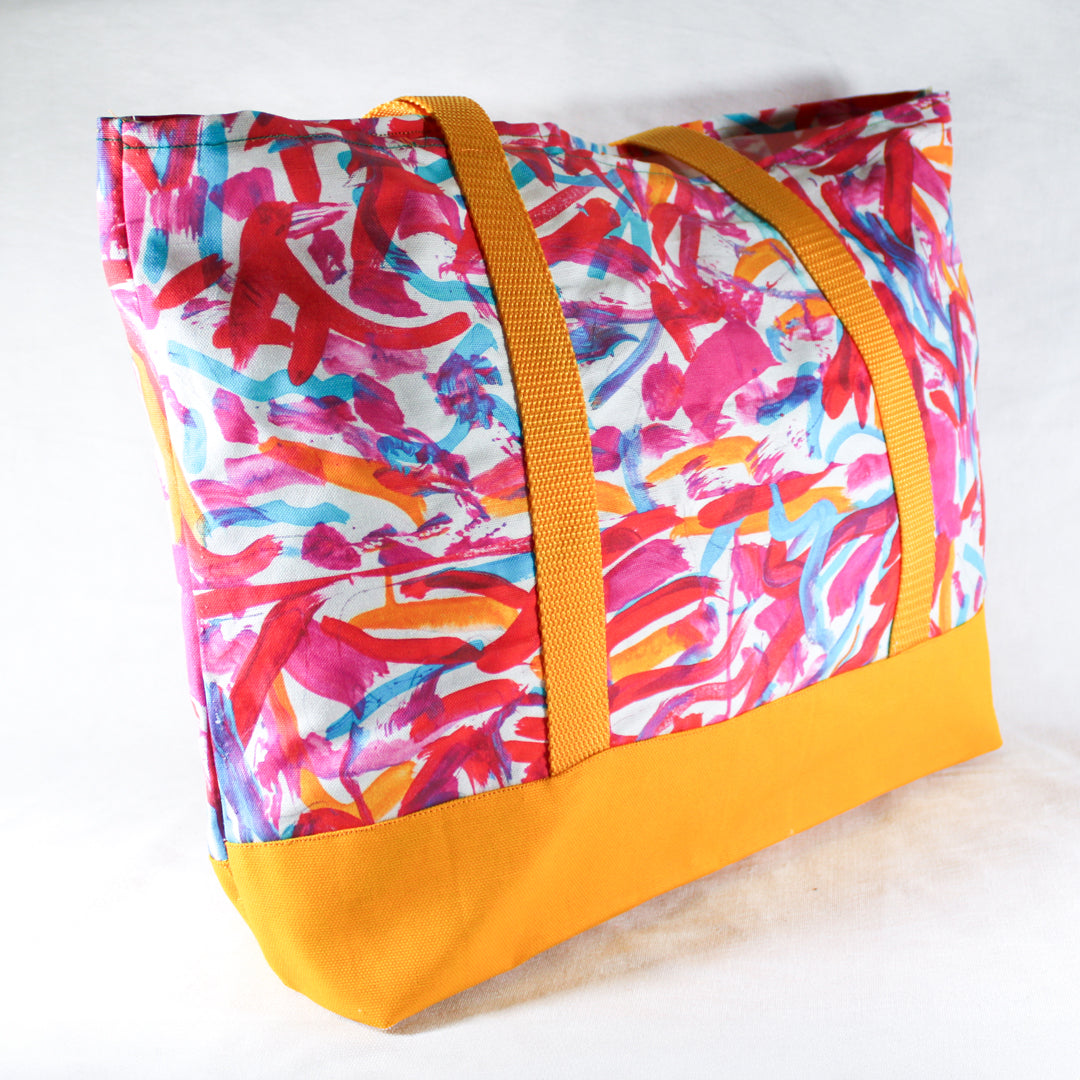 Ted Bednark’s colorful tote bag is a vibrant and versatile accessory, perfect for adding a splash of personality to your daily routine. Featuring an eye-catching abstract design in bold hues of pink, orange, blue, and purple, this bag is both stylish and functional. The durable fabric construction is complemented by sturdy orange straps and a reinforced base, making it ideal for carrying groceries, beach essentials, or work supplies. Spacious and lightweight, this tote combines practicality with artistic flair, making it a fantastic choice for anyone looking to brighten their day with a touch of handmade craftsmanship.