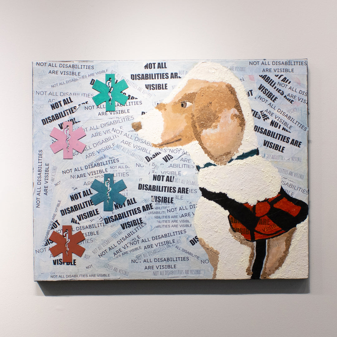 "I painted my service dog, Toby to let people know that not all disabilities are visible. My painting is done with textured acrylic."