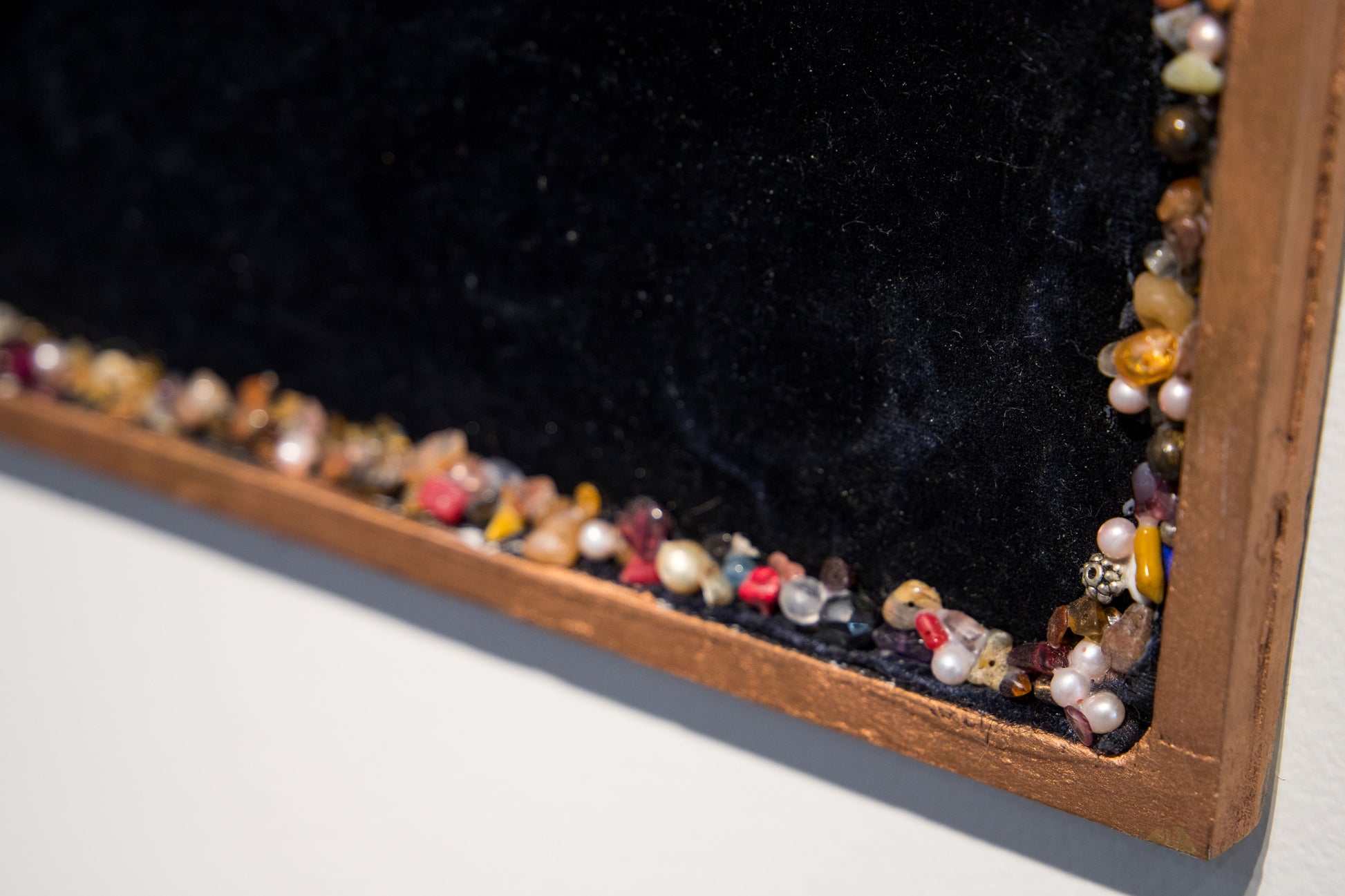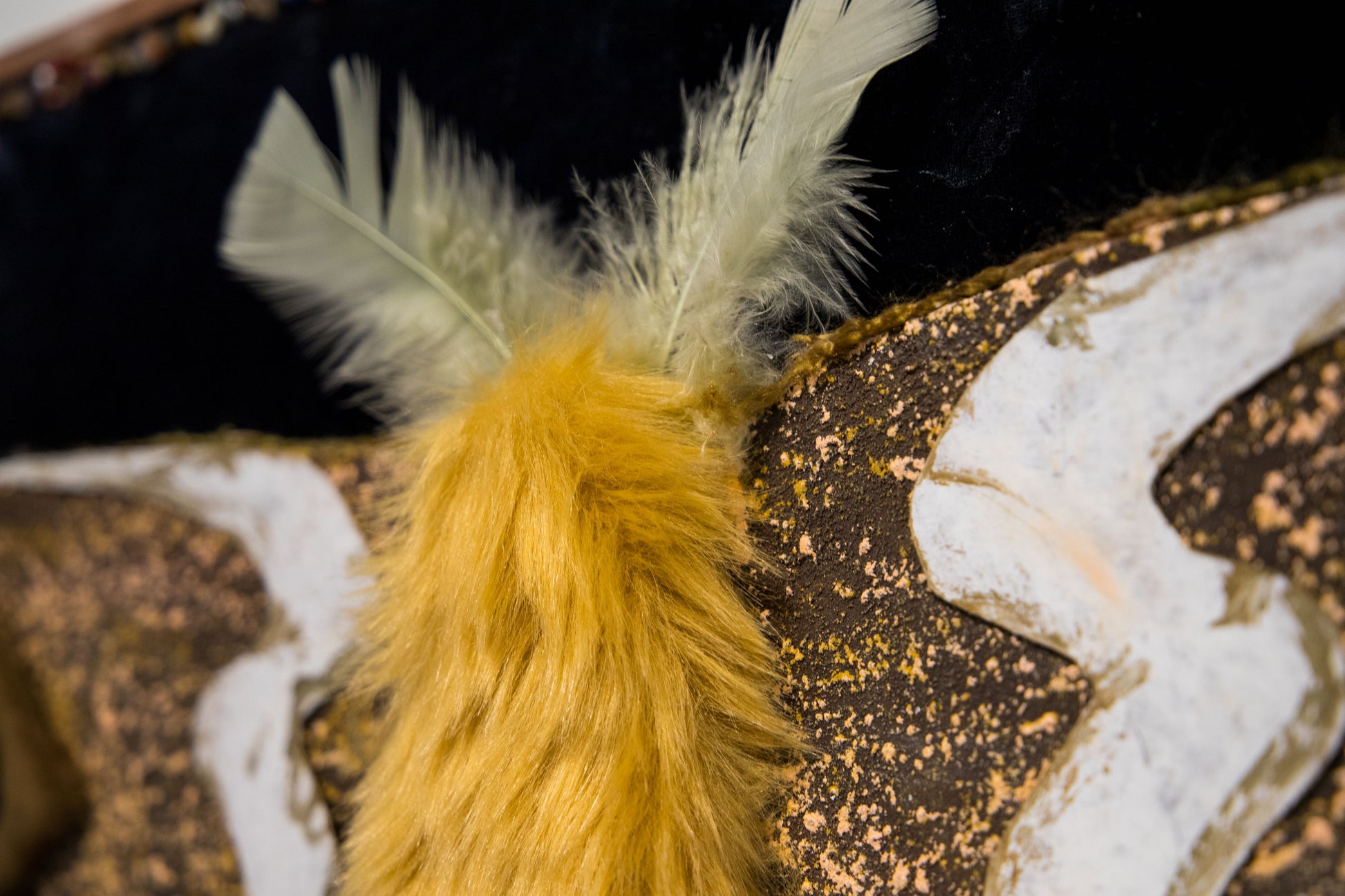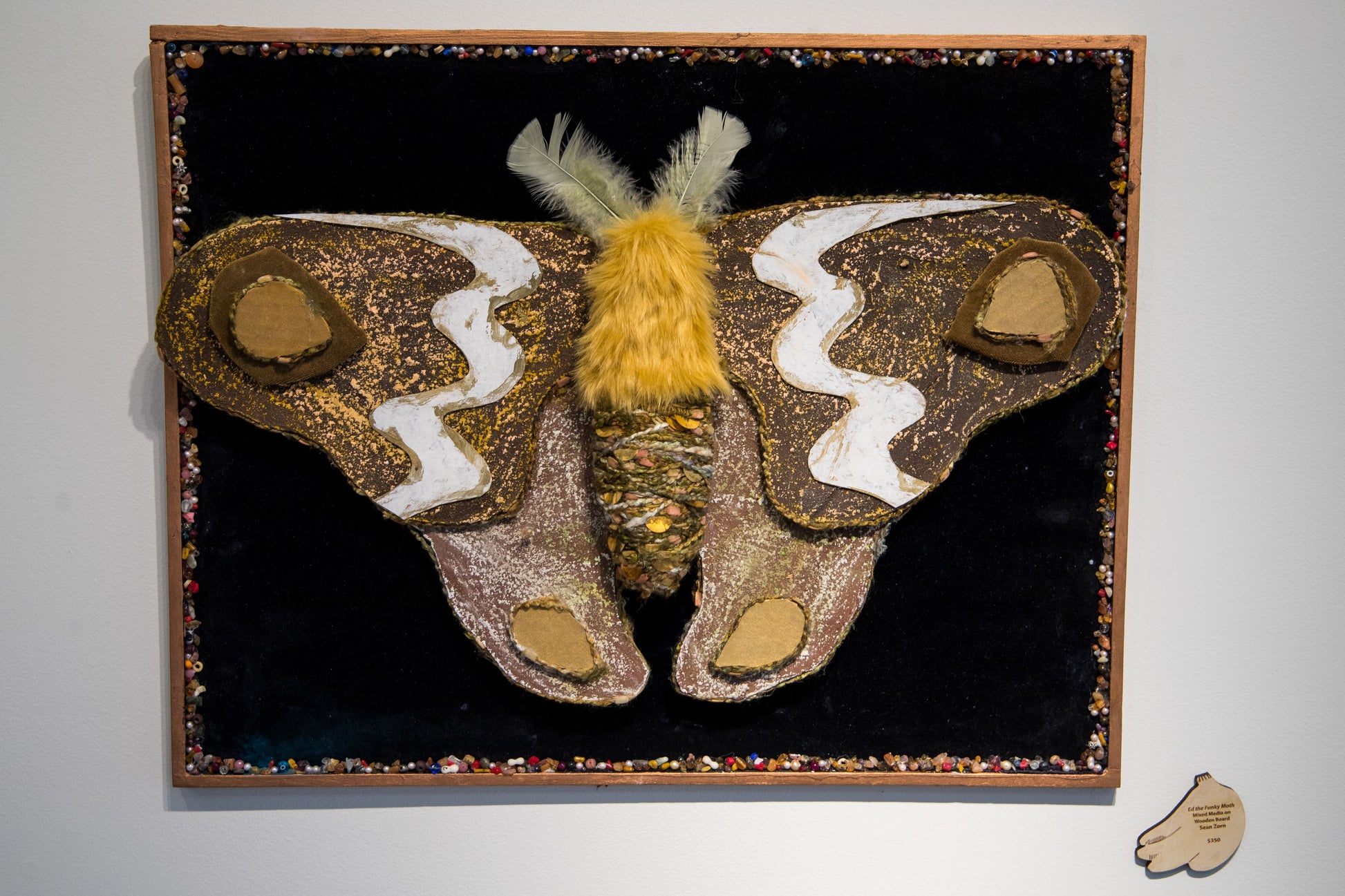 The night sky serves as a striking backdrop for the moth, created with a blend of oil pastels and other media. The celestial hues of blues and blacks evoke a sense of mystery and wonder, while the careful placement of beads adds a touch of sparkle and reflection. The interplay of light and shadow brings the artwork to life, making it a focal point that will inspire awe and fascination. "Ed the Funky Moth" is a testament to Sean Zorn's artistic vision and skill, offering a visual journey that will captivate viewers and spark their imagination.