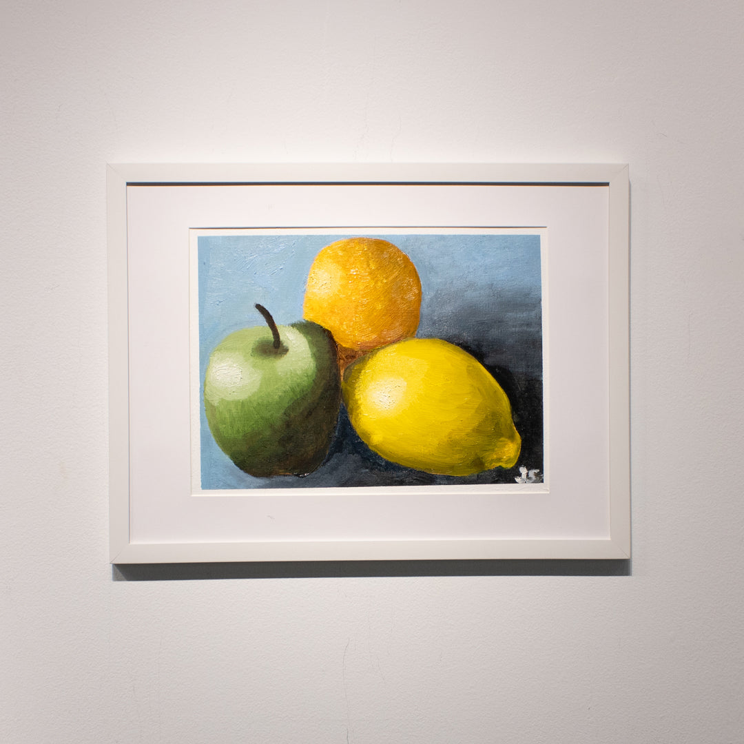 There's a quote in everybody loves Raymond where he describes his newspaper article as "illuminating the human condition" and I took inspiration from that for my title because I thought it was funny. I blended light and dark colors to create a dramatic effect with the lighting on the fruits. I wanted to make it as realistic as possible, and make them come off the page. I surprised myself with the end result of the painting.