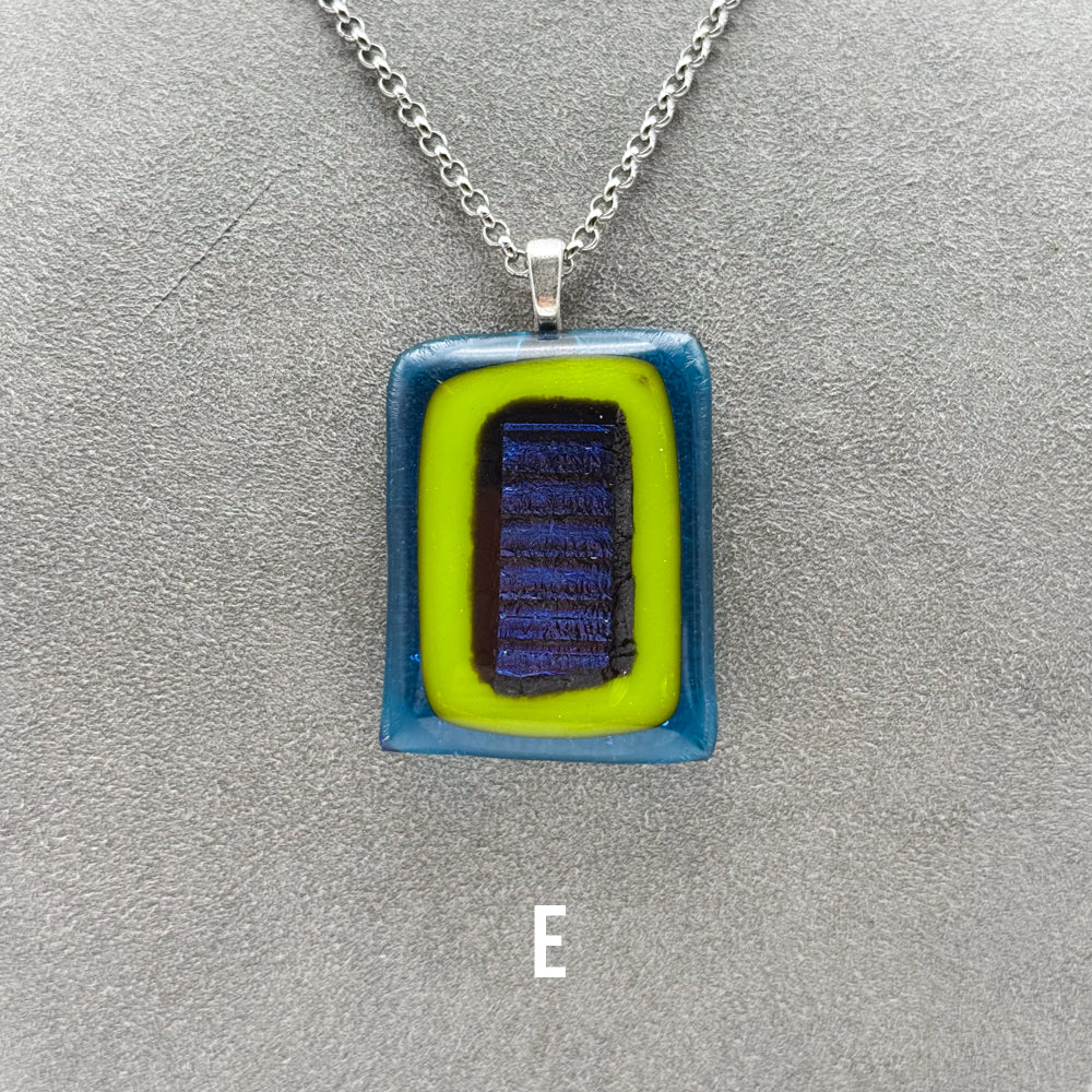 These Glass Fused Necklaces by Terry Majewski shine with bold color and texture. Each pendant is made from layers of fused glass, creating a unique, one-of-a-kind design full of shimmer and depth. From bright golds and reds to deep blues and greens, every piece catches the light beautifully. Sold separately, these necklaces make a perfect statement accessory or thoughtful handmade gift.