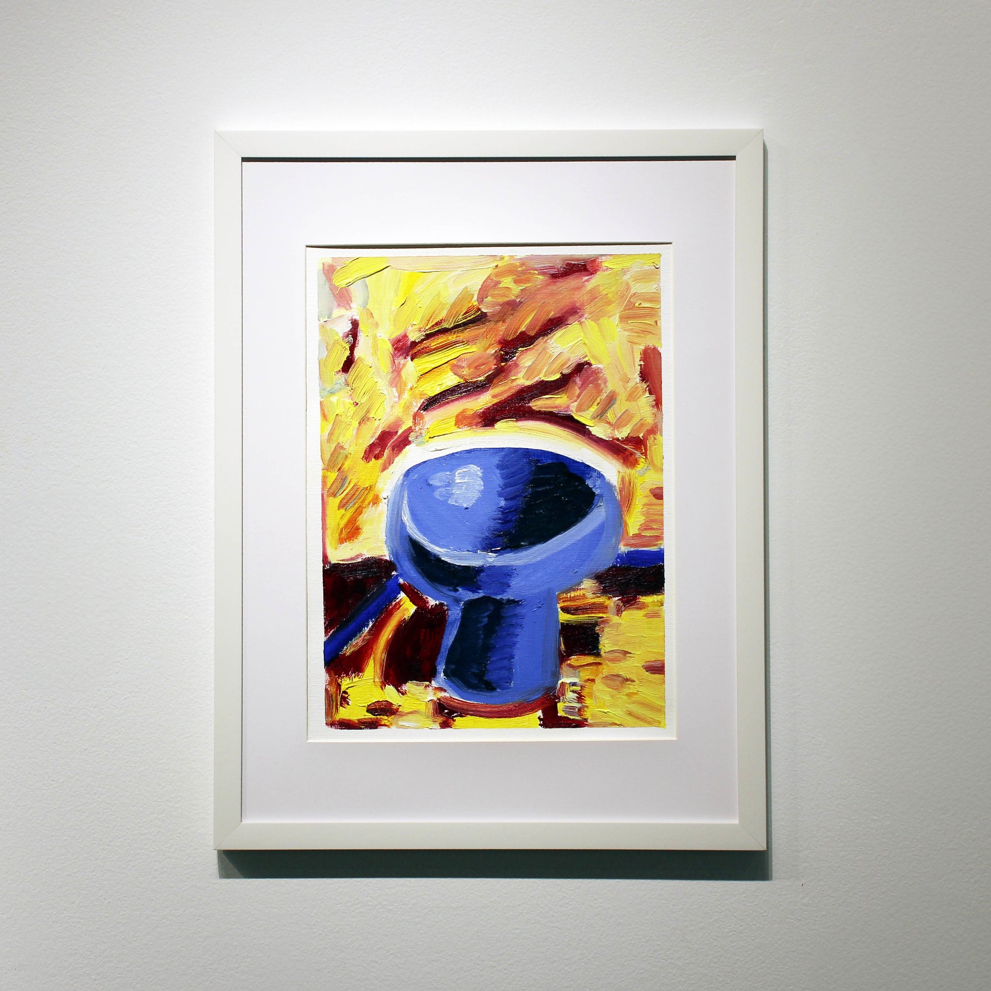 "Goblet of Fire," is one of Andrew's first ever oil paintings! You can feel his exploration of the paint with his exciting mark making and color choices in the background. The vase in the foreground juxtaposes this, as it is painted with a lot of care and attention, as Andrew was learning how to mix and blend his colors.