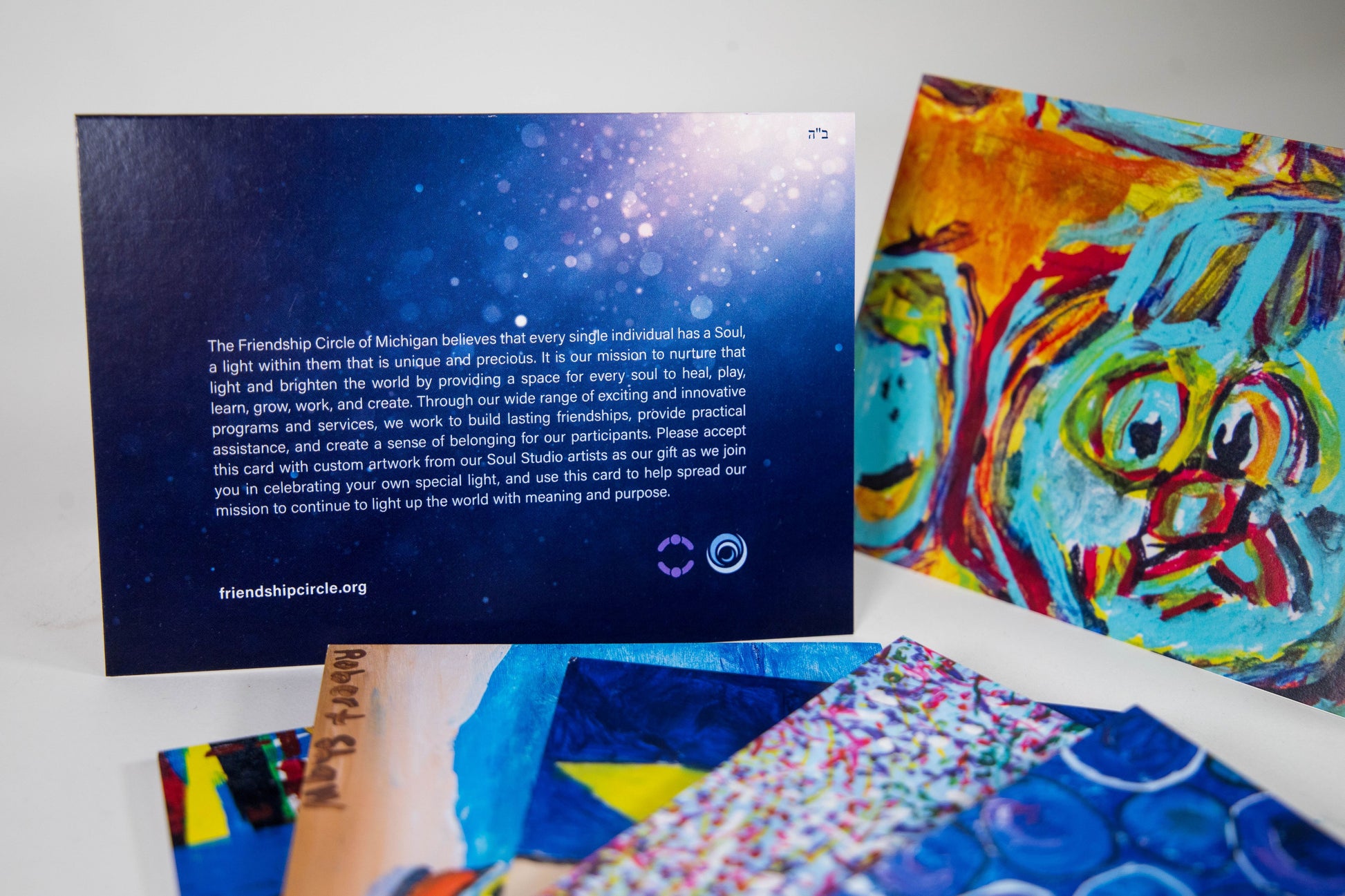 Set of 10 4x6 greeting cards featuring artwork by different Soul Studio artists.