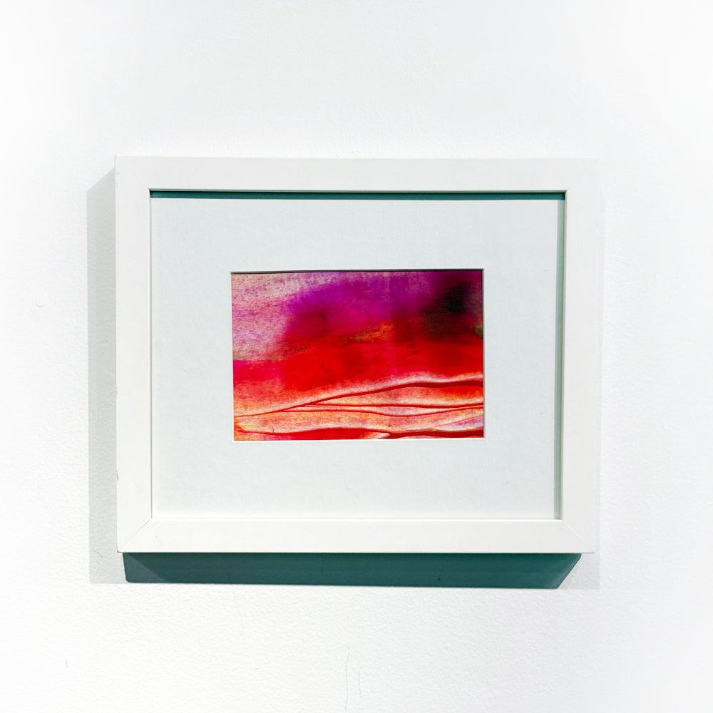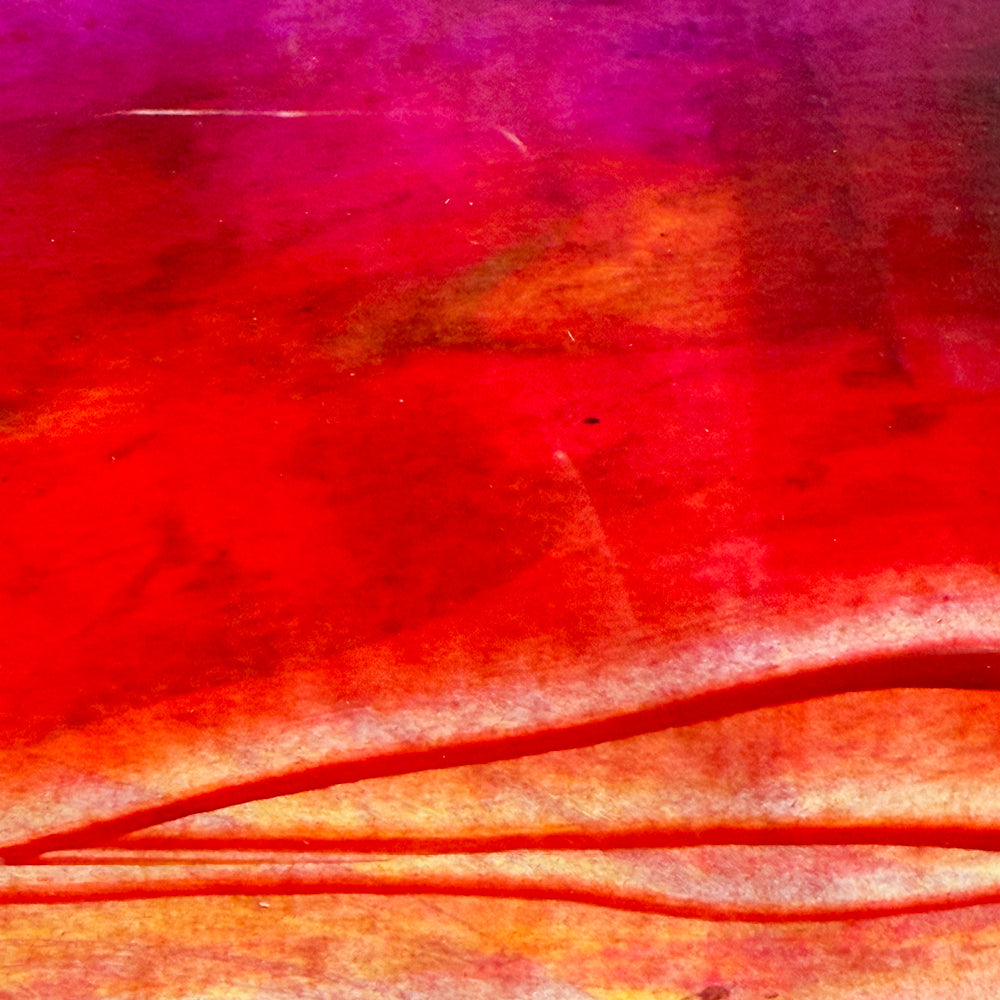 Saginaw Sunset by Maya Bartholomew is a glowing piece that shows a sunset full of deep pink, orange, and red colors. The soft lines look like the sun setting over hills or water, with the sky glowing above. This piece feels calm and warm, like the end of a peaceful day in Saginaw.