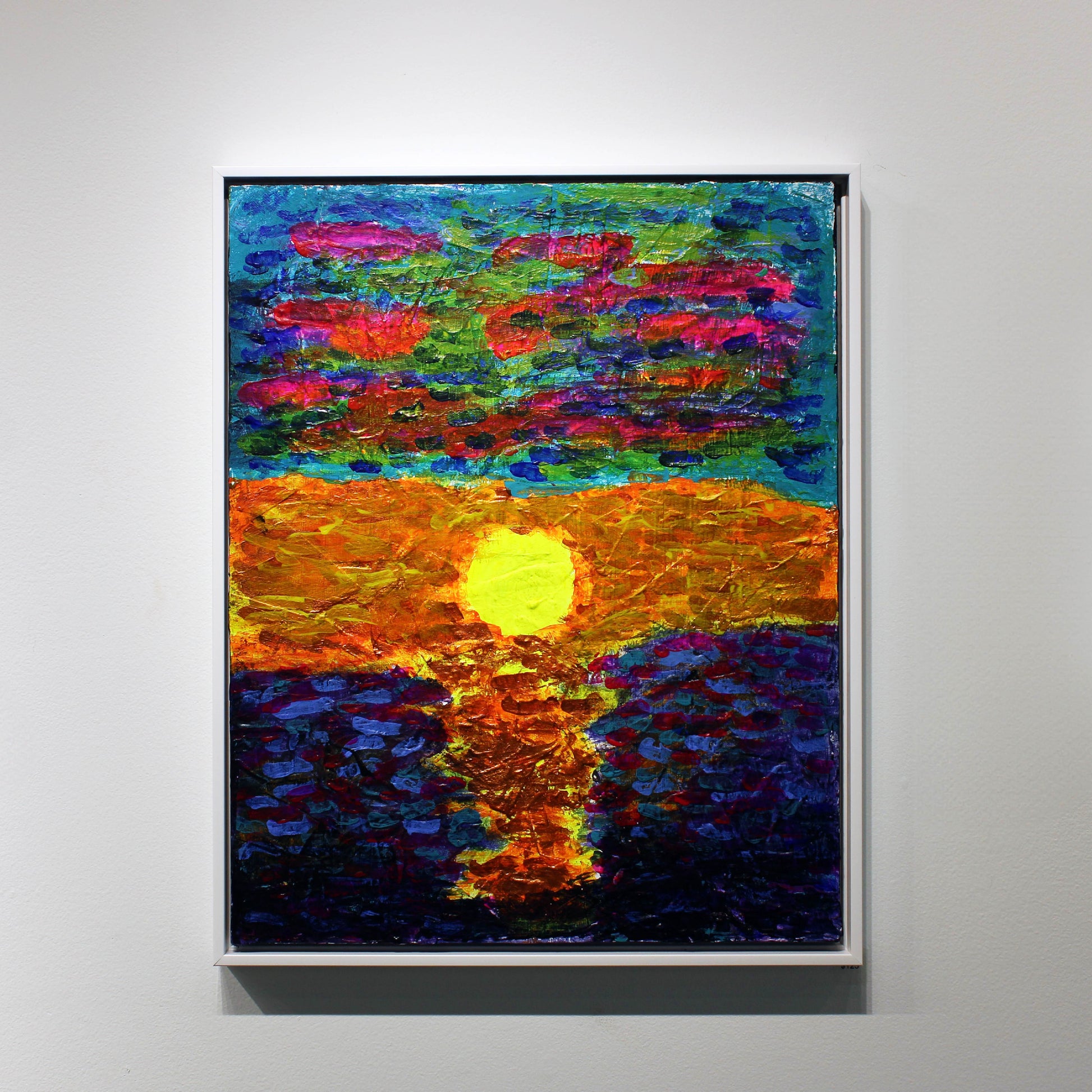 "Sun Thoughts" is my bright and joyful painting of a sunset, made with brushstrokes that bring out warmth and happiness. Inspired by sunsets, I wanted to capture the simple beauty of nature and share the joy I feel when I see those bright colors.