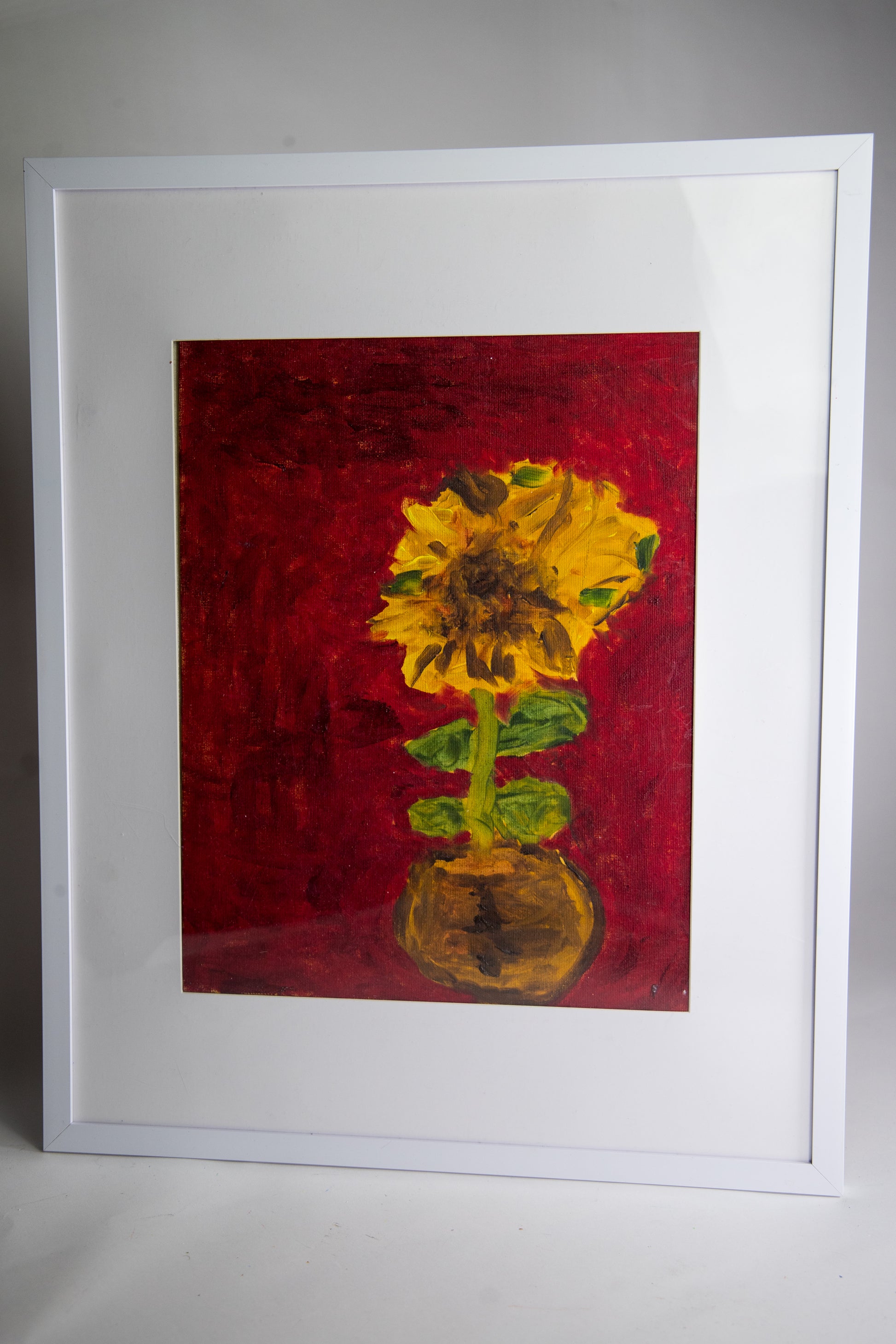 This expertly crafted still life painting of a sunflower features deep rich hues and painterly brush strokes, creating a stunningly realistic depiction. With its vibrant colors and detailed brushwork, this piece is sure to add a touch of natural beauty to any room.