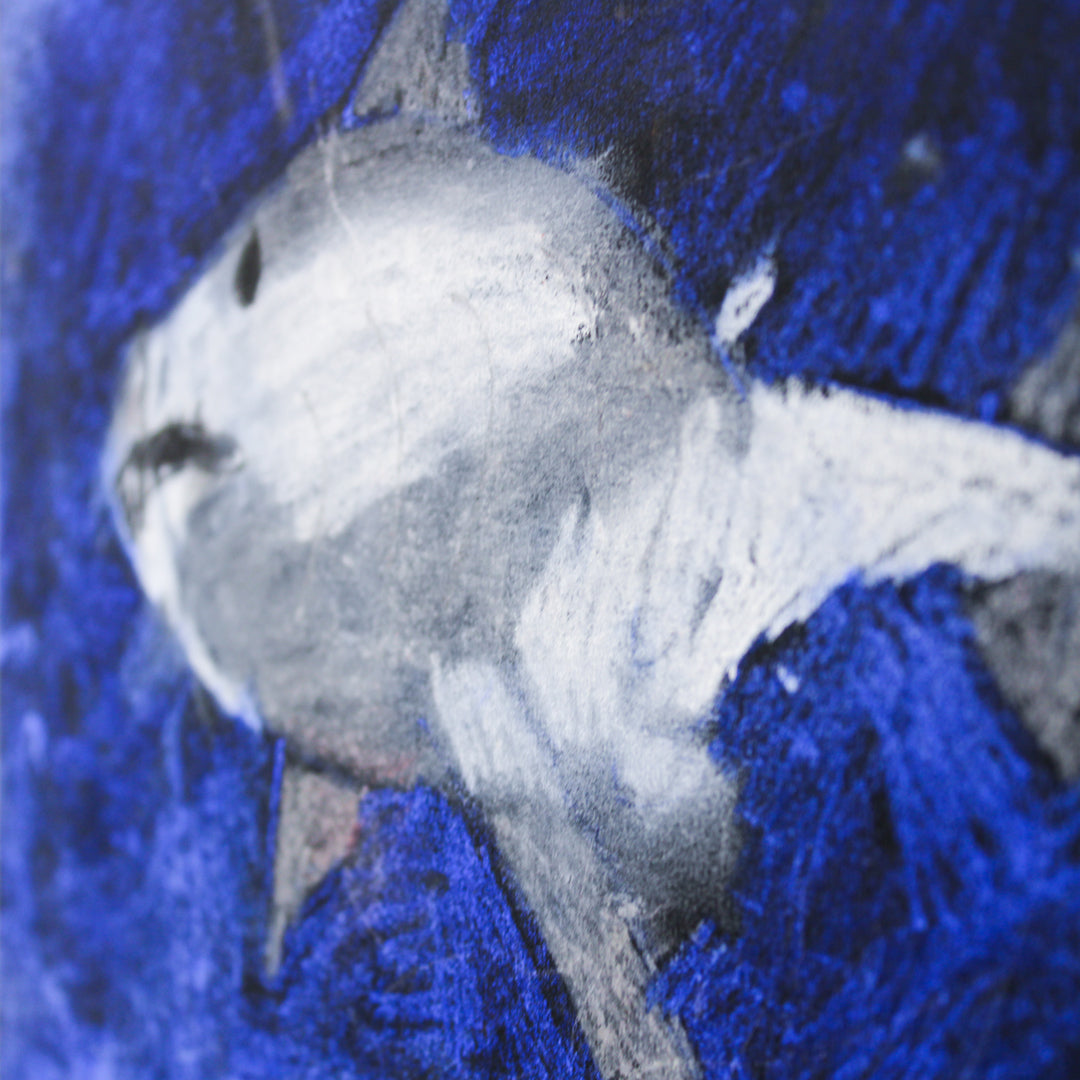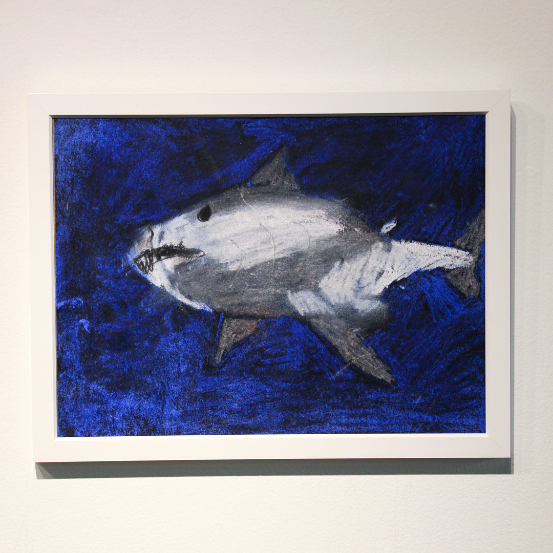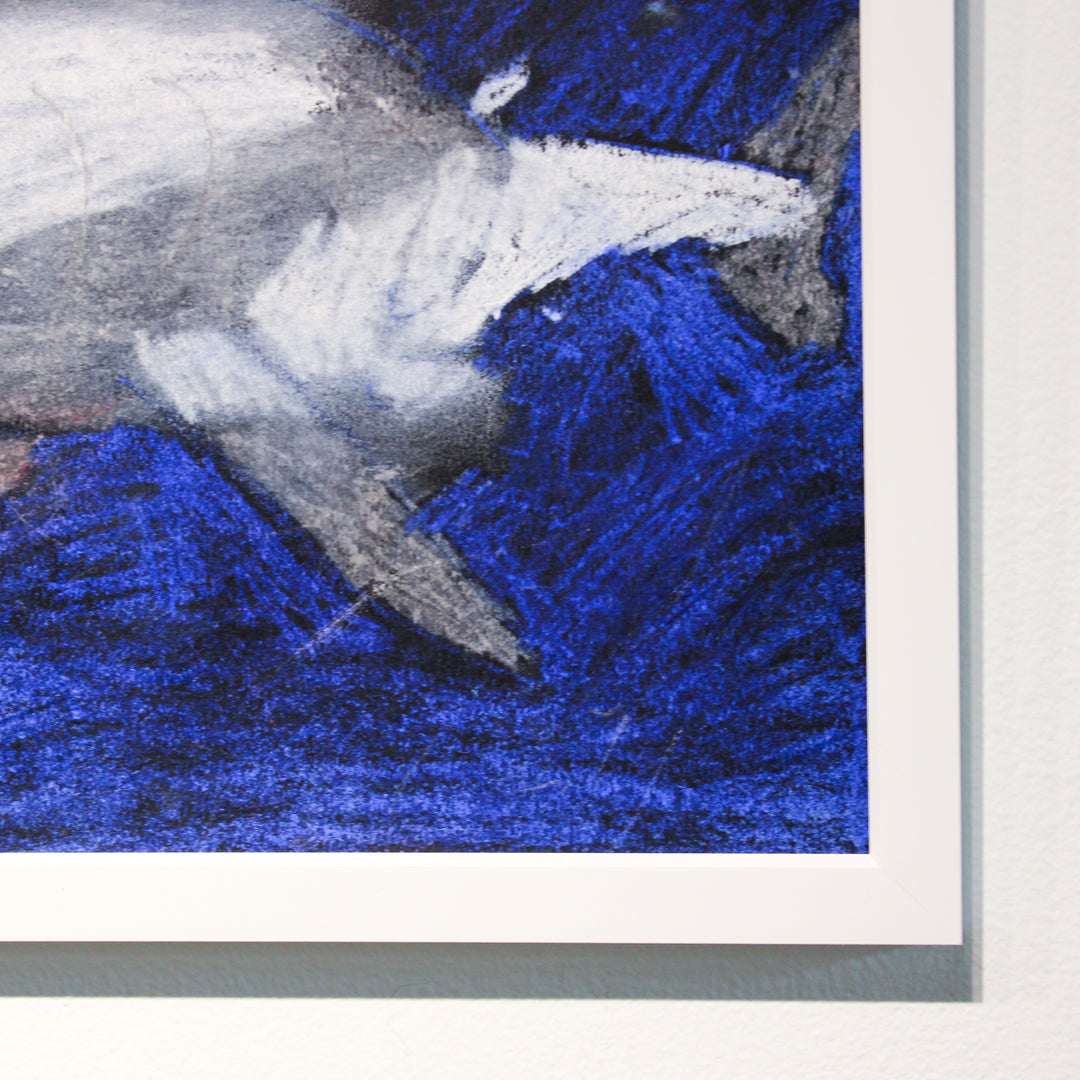 Hayden Dorfman's The Sea Picture is a striking mixed media artwork that captures the raw beauty and mystery of ocean life. Featuring a bold depiction of a shark against a vivid, deep blue background, this piece evokes the power and majesty of marine creatures. The textured application of media enhances the sense of movement and depth, drawing the viewer into the dynamic underwater world. Perfect for art lovers and ocean enthusiasts alike, this framed artwork brings a sense of wonder and natural beauty to any space.
