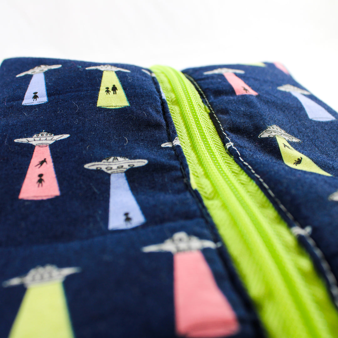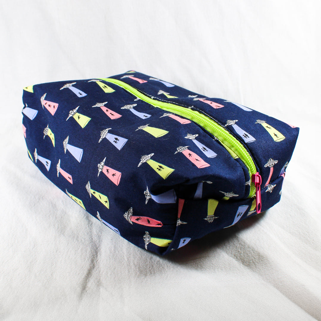 This whimsical UFO cosmetic bag, by Cquat Taylor, adds a playful touch to your beauty routine with its vibrant, eye-catching design. Featuring a charming illustration of a colorful UFO, the bag is both fun and functional, perfect for storing makeup essentials, toiletries, or travel items. Crafted from durable materials, it offers ample space while maintaining a compact silhouette that fits easily into any bag. The smooth zipper closure ensures that your belongings are secure, while the unique artwork showcases the artist's creativity and flair. This cosmetic bag is not just an accessory; it's a statement piece that reflects your individuality and love for all things quirky.